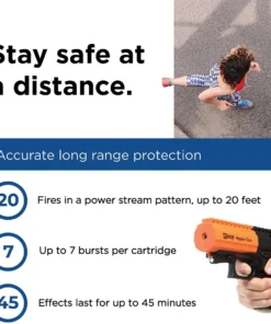 Accurate & effective advanced delivery system provides long-range protection by firing a powerful pepper spray stream up to 20 ft in distance
