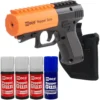 Includes 1 ounce pepper cartridge that contains 7 short bursts and has a pistol-grip design that increases point-and-shoot accuracy
